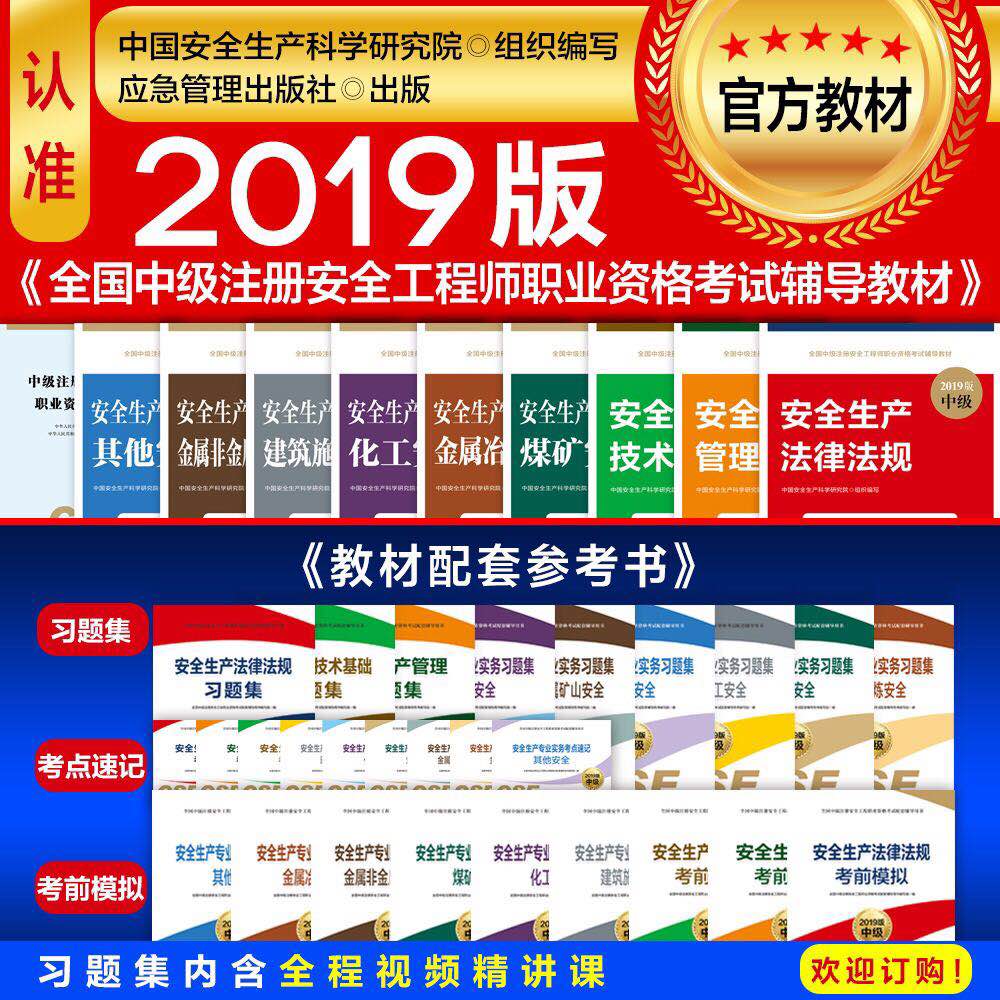 此次出售的不僅有2020年中級注冊安全工程師教材,還有習題集、考點速記和考前模擬卷配套參考書。