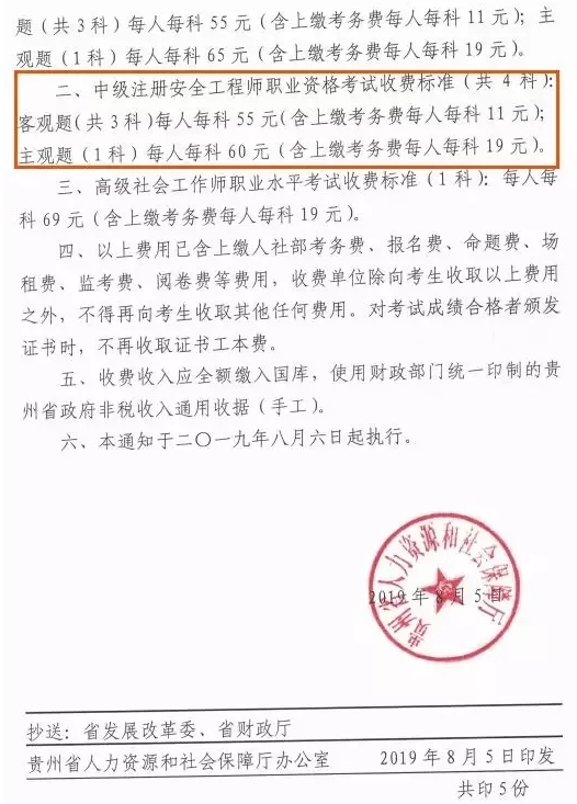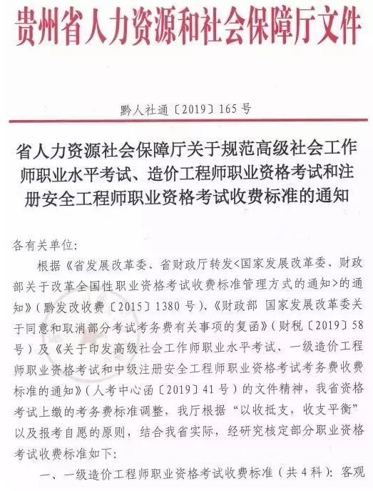 貴州省發(fā)布《關(guān)于規(guī)范高級社會工作師職業(yè)水平考試、造價工程師職業(yè)資格考試和注冊安全工程師職業(yè)資格考試收費標準的通知》通知中顯示了2019年中級安全工程師考試的報名費用,一起來看看吧!