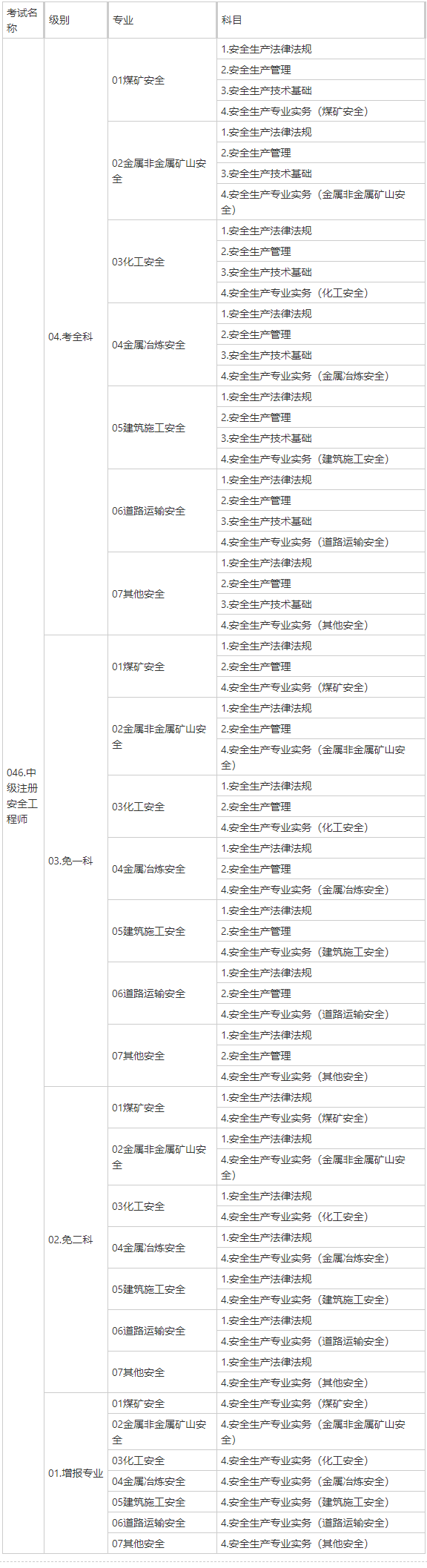 3.中級(jí)注冊(cè)安全工程師職業(yè)資格考試代碼及名稱表