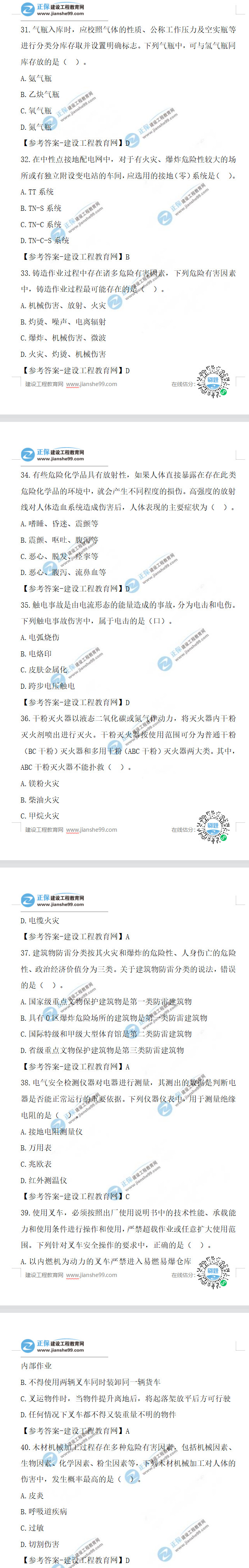 2021年安全工程師生產(chǎn)技術(shù)試題及答案解析31-40題