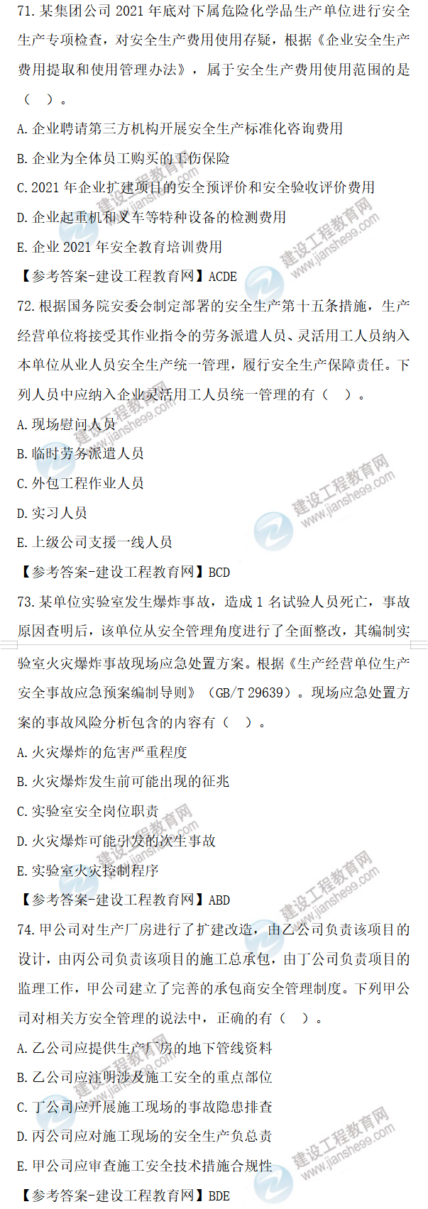 2022年安全工程師生產(chǎn)管理試題及答案解析71-85題