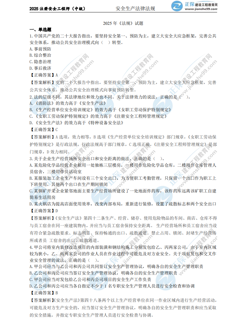 2025年中級安全工程師《法律法規(guī)》考試結(jié)束,考生們最關(guān)心的肯定是這一科目試題及答案。建設(shè)工程教育網(wǎng)考后會依據(jù)考生反饋,及時匯總中級安全工程師《法律法規(guī)》的試題及答案,期望能給各位考生提供幫助!