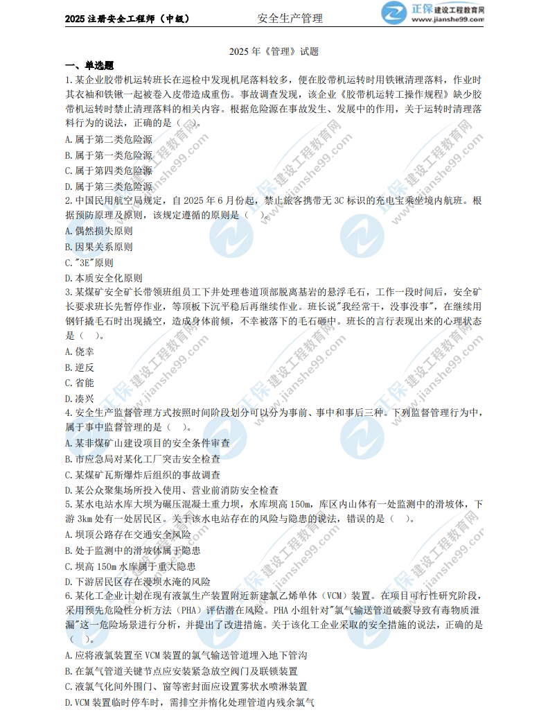2025年中級(jí)安全工程師《生產(chǎn)管理》考試結(jié)束,考生們最關(guān)心的肯定是這一科目試題及答案。建設(shè)工程教育網(wǎng)考后會(huì)依據(jù)考生反饋,及時(shí)匯總中級(jí)安全工程師《生產(chǎn)管理》的試題及答案,期望能給各位考生提供幫助!