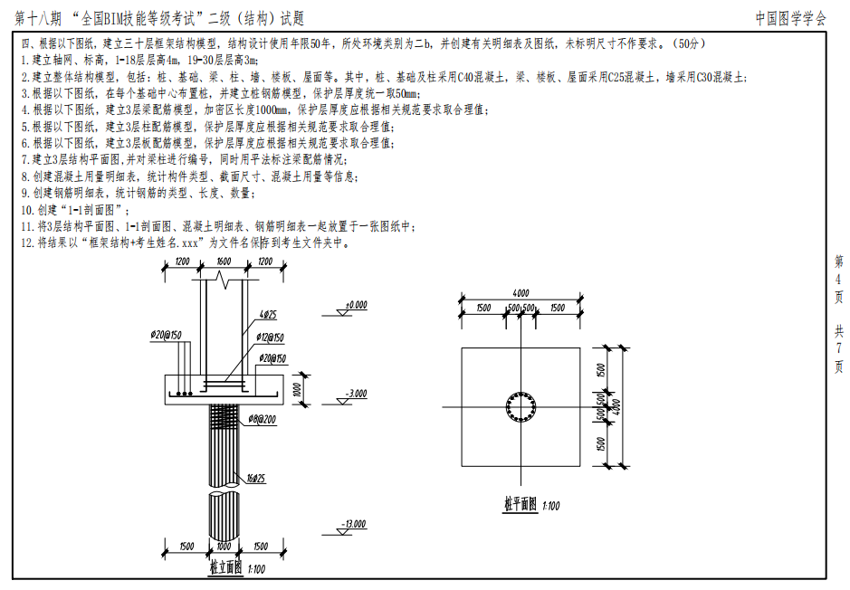 第十八期全國BIM技能等級(jí)考試二級(jí)(結(jié)構(gòu))試題