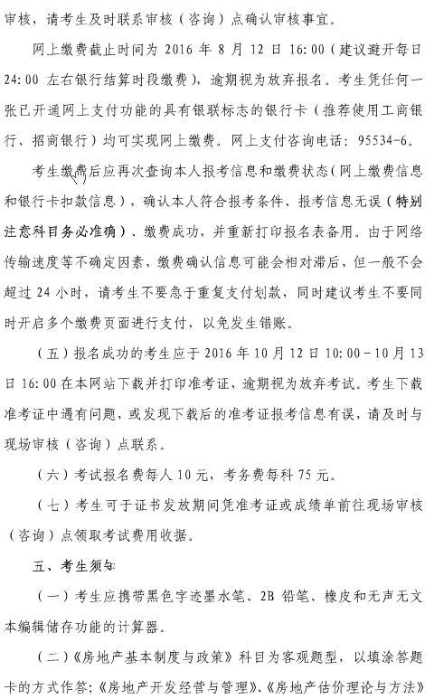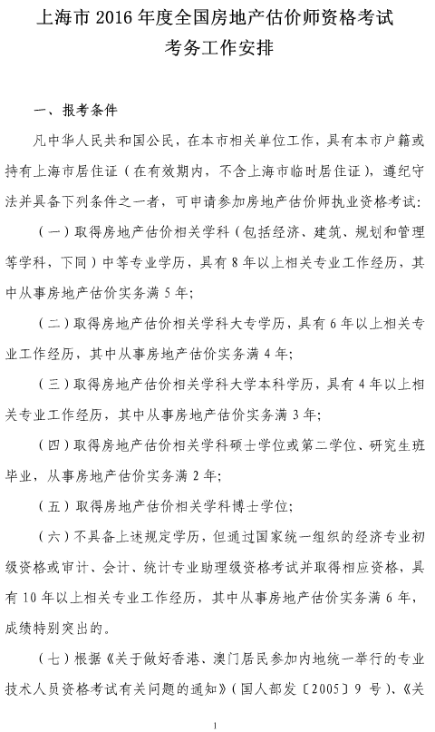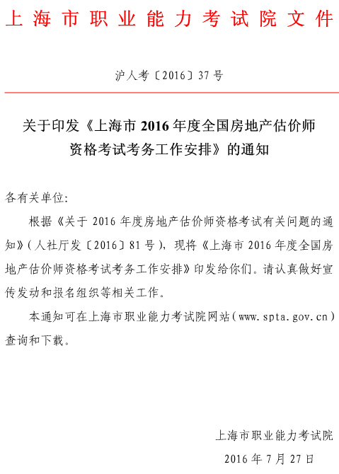 上海2016年房地產(chǎn)估價師資格考試考務(wù)工作安排