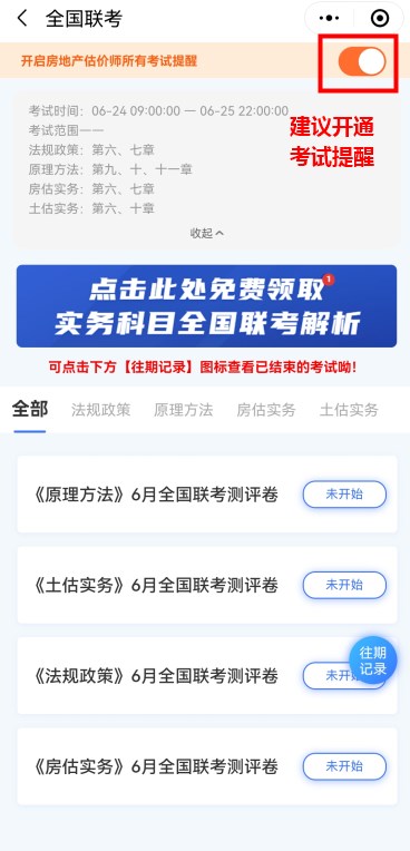 建議開通考試提醒,避免錯(cuò)過(guò)房地產(chǎn)估價(jià)師考試。