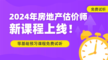 2024年房地產(chǎn)估價(jià)師新課已上線,超值精品班、高效實(shí)驗(yàn)班、尊享無(wú)憂班,多種班次任您選擇。想要拿到房估證書(shū),備考即刻開(kāi)始。2024房估課程>>
