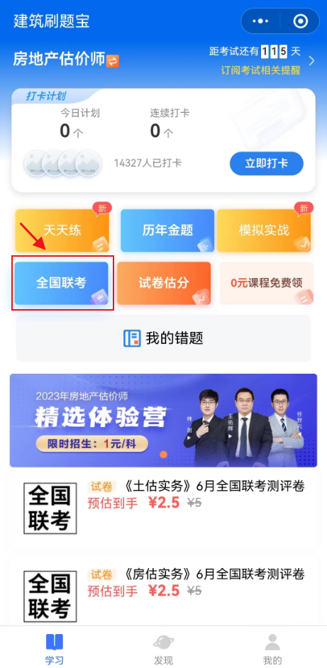 點擊“全國聯考”進入考試入口。