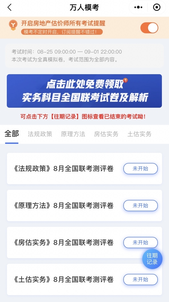 房地產(chǎn)估價師8月萬人??紩r間:8月25日9點-9月1日22點