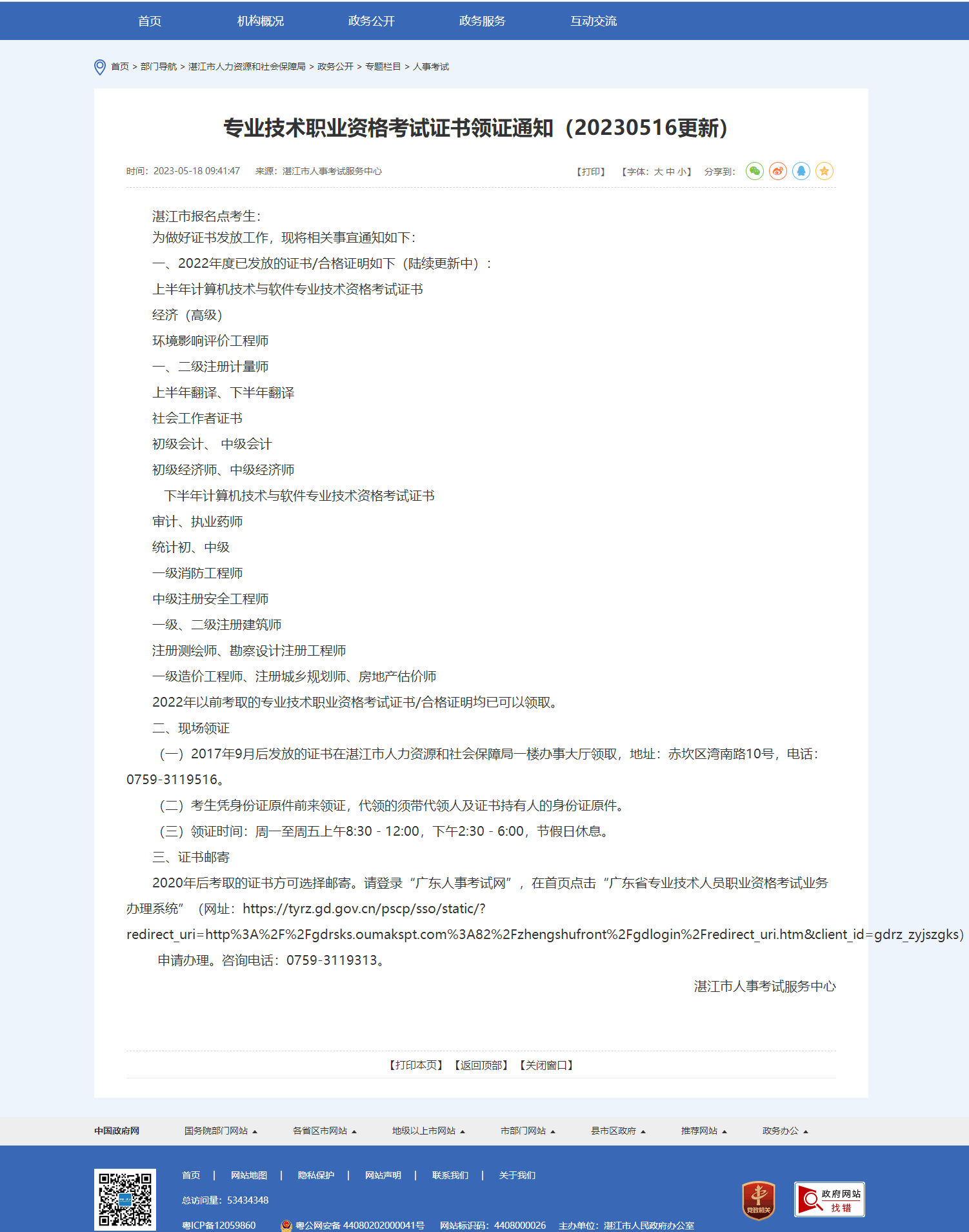 專業(yè)技術(shù)職業(yè)資格考試證書領(lǐng)證通知(20230516更新)