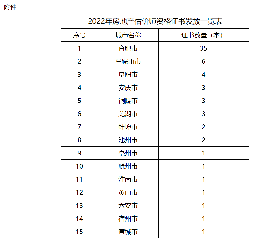 附件:2022年房地產估價師資格證書發(fā)放一覽表