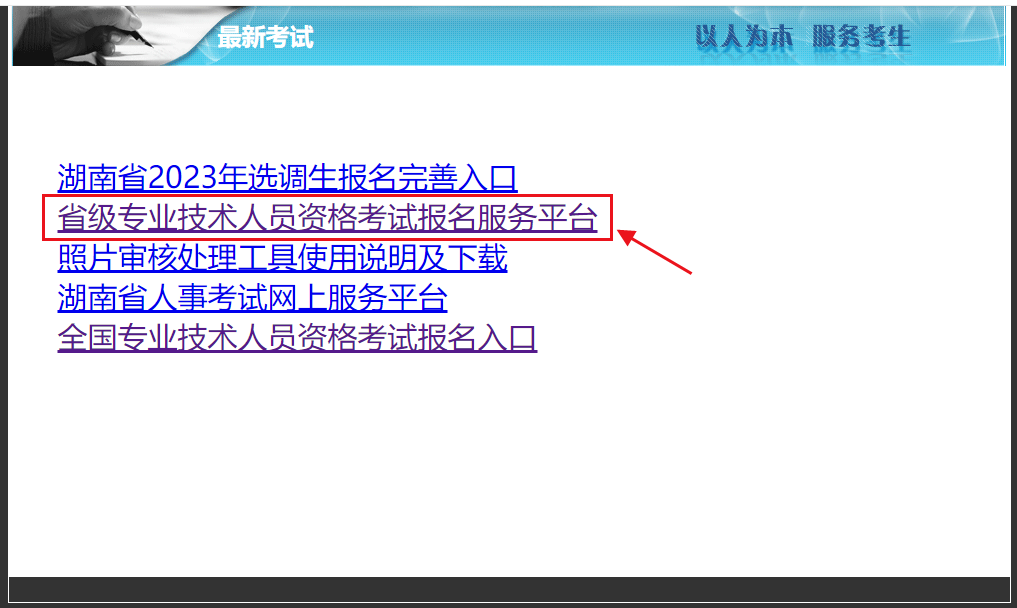 報考人員應(yīng)登錄湖南人事考試網(wǎng)(),點擊“網(wǎng)上報名”中的“省級專業(yè)技術(shù)人員資格考試服務(wù)平臺”,簡稱“網(wǎng)報平臺”,下同)進(jìn)行報名。報名流程有注冊登錄、注冊核查、報名信息填報、報名核查、網(wǎng)上繳費(fèi)等5個步驟。