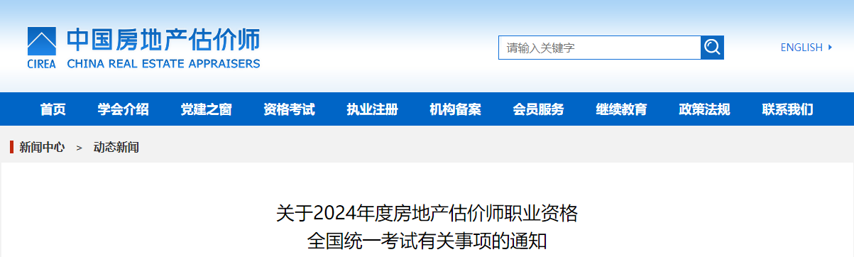 關(guān)于2024年度房地產(chǎn)估價師職業(yè)資格全國統(tǒng)一考試有關(guān)事項的通知