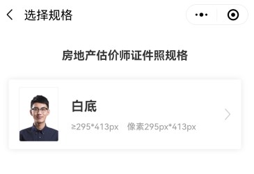 房地產估價師考試報名對上傳的報名照片有如下要求:照片文件為JPG格式或JPEG格式,像素為295px×413px,尺寸為1寸證件照(2.5cm×3.5cm),大小約為10KB,底色為白色。