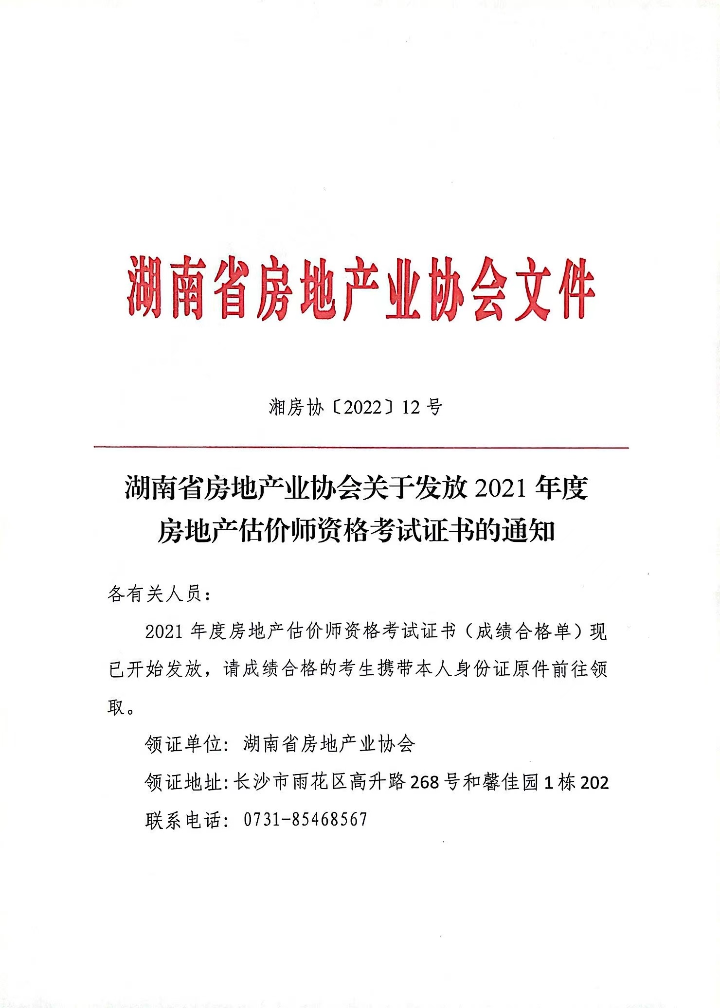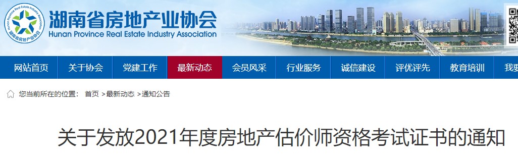 湖南省關(guān)于發(fā)放2021年度房地產(chǎn)估價(jià)師資格考試證書的通知