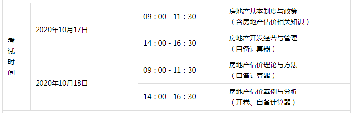 房地產(chǎn)估價師考試時間及科目