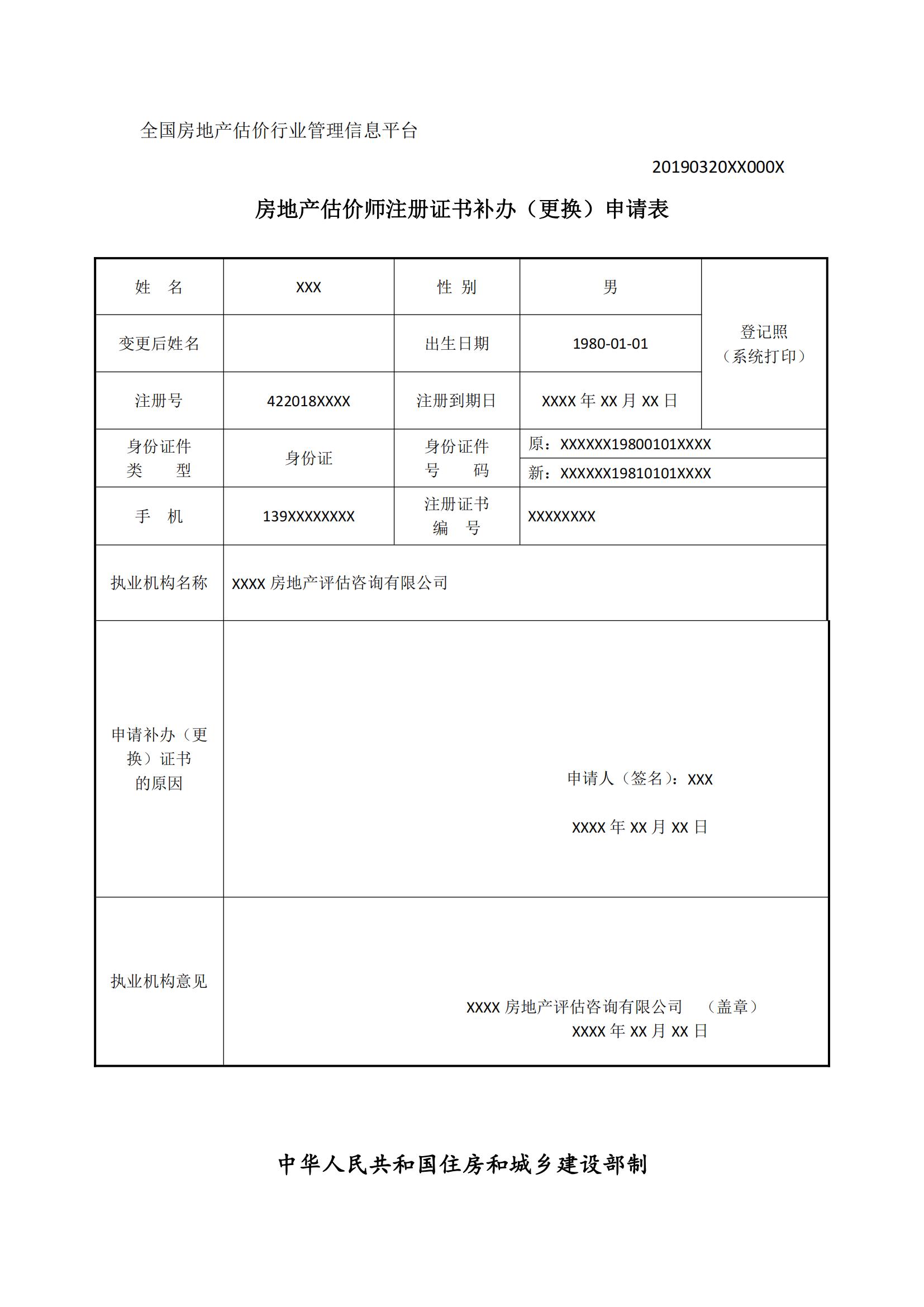 房地產(chǎn)估價師注冊證書補辦(更換)申請表