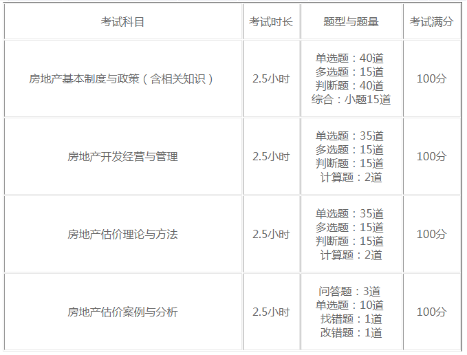 房地產(chǎn)估價師各科目考試時間均為2.5小時