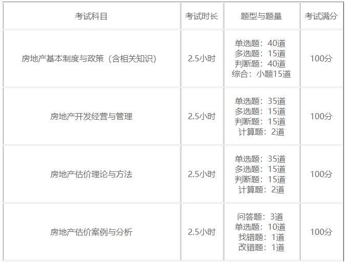 房地產(chǎn)估價(jià)師往年考試科目分為四科,分別是:《房地產(chǎn)基本制度與政策》(含房地產(chǎn)估價(jià)相關(guān)知識)、《房地產(chǎn)開發(fā)經(jīng)營與管理》、《房地產(chǎn)估價(jià)理論與方法》、《房地產(chǎn)估價(jià)案例與分析》(開卷)4個(gè)科目。