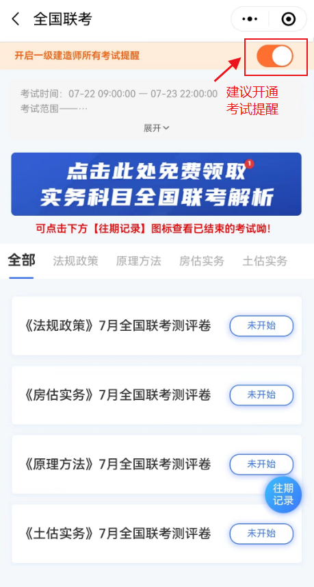 建議開通考試提醒,避免錯過房地產(chǎn)估價師考試。