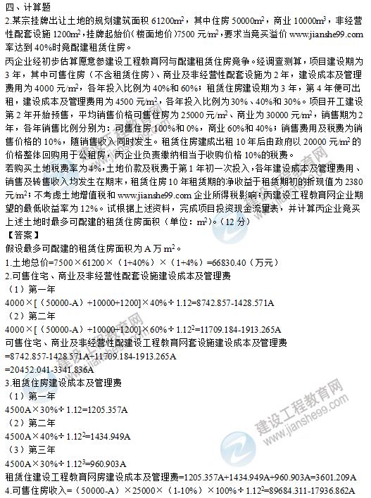 2019年房地產(chǎn)估價(jià)師《房地產(chǎn)開發(fā)經(jīng)營(yíng)與管理》計(jì)算題試題及答案解析。房地產(chǎn)估價(jià)師考試過后,考生關(guān)注的莫過于房地產(chǎn)試題答案及考試成績(jī),考試結(jié)束后建設(shè)工程教育網(wǎng)將為大家整理并提供2019年房地產(chǎn)估價(jià)師《房地產(chǎn)開發(fā)經(jīng)營(yíng)與管理》試題及答案解析匯總,參加房估考試的同學(xué)可以作為參考預(yù)估自己的考試成績(jī)。點(diǎn)擊查看2019年房地產(chǎn)估價(jià)師試題及答案解析匯總>>