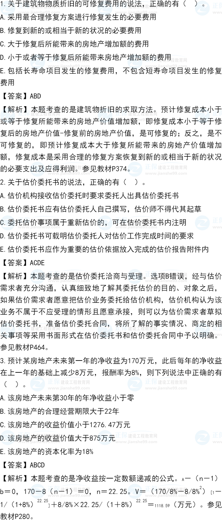 2021年房地產(chǎn)估價師原理方法試題及答案解析多選題1-10題