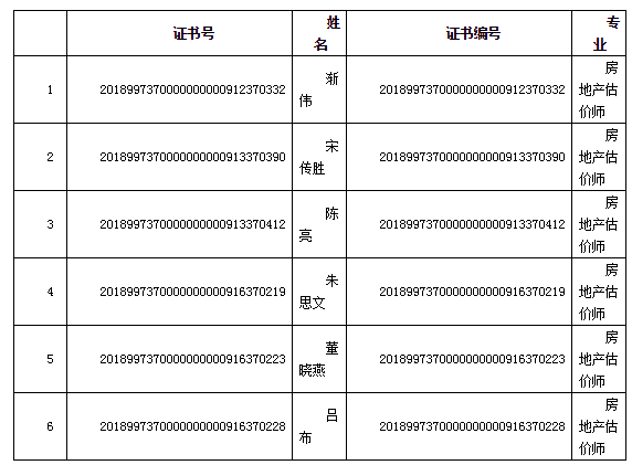 2018年房地產(chǎn)估價師合格人員名單