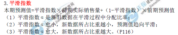 考前半個(gè)月,教材應(yīng)該過了一遍,課件也聽了好多遍,是不是還是有些考點(diǎn)容易記混淆?考前沖關(guān)寶典最后幫你串一串考點(diǎn),考前沖關(guān)寶典提到了“平滑指數(shù)”,并且列出了計(jì)算公式,本期預(yù)測(cè)值=平滑指數(shù)*前期實(shí)際銷售量+(1-平滑指數(shù))*前期預(yù)測(cè)值。非估價(jià)專業(yè)或者基礎(chǔ)不好的同學(xué),不記住公式很難答對(duì)這道題目,考前沖關(guān)寶典按照章節(jié),列出了??键c(diǎn)和重點(diǎn)難點(diǎn),精簡書本,考前人手一份,臨上考場(chǎng)不膽怯。
