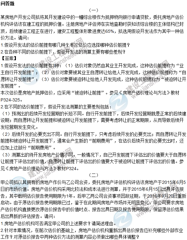 2016年房地產(chǎn)估價(jià)師《案例與分析》試題解析問答題1-3