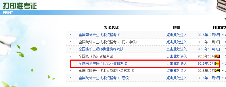 黑龍江2016年房估產(chǎn)估價(jià)師準(zhǔn)考證打印入口: