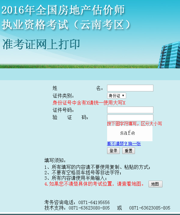 云南公布2016年房地產(chǎn)估價師準(zhǔn)考證打印入口