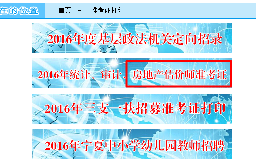 寧夏人事考試網(wǎng)公布2016年房地產(chǎn)估價師準(zhǔn)考證打印入口