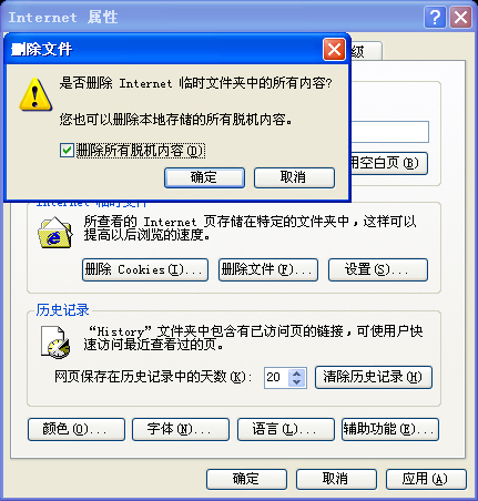 第二步,點擊“刪除文件”按鈕,在彈出的窗口中選中“刪除所有的脫機內容”,如下圖。