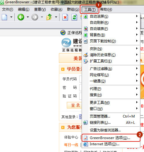 打開綠色瀏覽器-工具-GREENBROWSER選項,如圖所示: