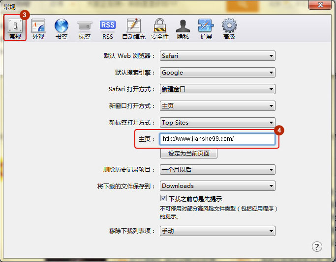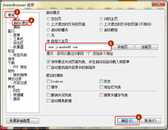 常規(guī)-啟動/退出-自定義主頁內(nèi)輸入 m.mm34228.com 確定即可。