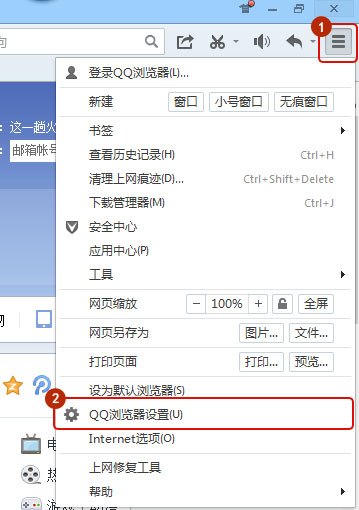 打開QQ瀏覽器,點擊右上角菜單 - QQ瀏覽器設(shè)置,如圖所示: