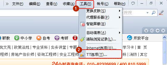 打開TT瀏覽器,選擇工具 - TT選項,如圖所示: