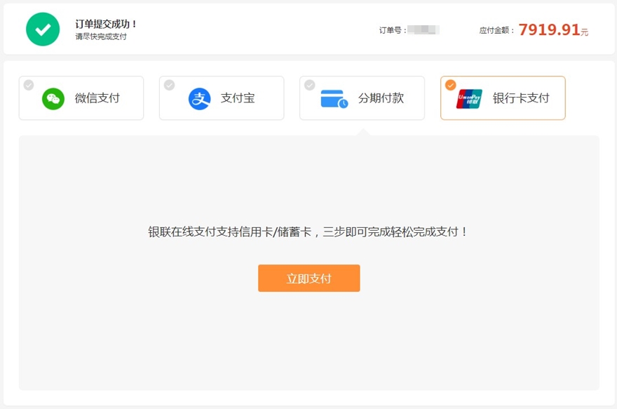 第四步:選擇支付方式,完成付款