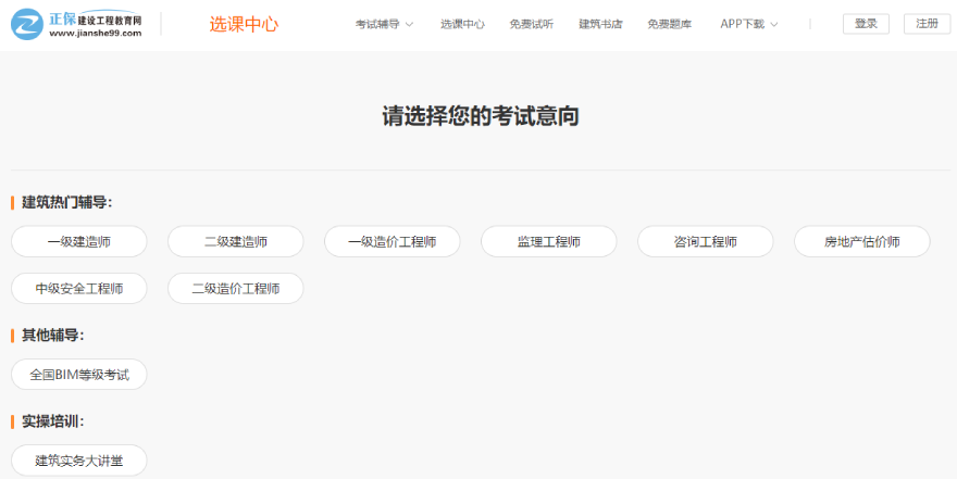 第一步:進入建設工程教育網(wǎng)校選課中心,選擇輔導類別