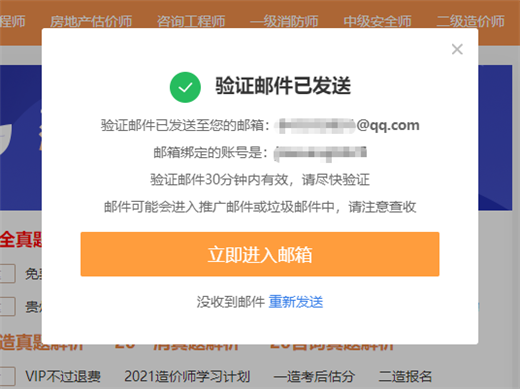 點(diǎn)擊立即進(jìn)入郵箱。(如果沒發(fā)送成功,點(diǎn)擊重新發(fā)送)