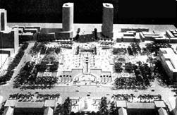 有的廣場(chǎng)周邊的圍合建筑在立面造型及體量上也缺乏統(tǒng)一,破壞了廣場(chǎng)的整體性,其原因就是在進(jìn)行建筑設(shè)計(jì)時(shí)沒有統(tǒng)一規(guī)劃或是新建筑沒有與舊建筑相統(tǒng)一。廣場(chǎng)周圍建筑布置手法有三種:1、向心式布局。這種布局方式會(huì)使得廣場(chǎng)的圍合感及整體性都非常好。如合肥的明珠廣場(chǎng)。 2、軸線式布局。這種布局方式多用于矩形廣場(chǎng),能獲得一種特殊的肅穆氣氛,尤其適合于政治性、集合性廣場(chǎng)。如成都的天府廣場(chǎng)(圖2-1)。 3、特殊式平面布置。在廣場(chǎng)平面不規(guī)則的情況下,新建筑可以采用尋求以舊建筑在布局上的共性特征為媒介,借助這種“特征”與舊建筑布局“對(duì)話”的手法,使廣場(chǎng)建立起一種內(nèi)在的秩序,以達(dá)到統(tǒng)一協(xié)調(diào)的效果。[4]如威尼斯的圣馬可廣場(chǎng)。(圖2-2)
