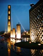 無論是歐洲巴洛克的廣場(chǎng)和城市設(shè)計(jì),還是中國封建都城(如紫禁城)及神壇(如天壇),都是通過強(qiáng)烈的軸線和占絕對(duì)統(tǒng)治的一個(gè)中心(如雕塑、噴泉)來形成一元化的空間,以表達(dá)一種絕對(duì)權(quán)力的存在。這往往使其成為與鄉(xiāng)土廣場(chǎng)或日常生活的社區(qū)廣場(chǎng)的一個(gè)主要區(qū)別。還廣場(chǎng)以人性與公民性就必須首先打破在封建和極權(quán)意志下形成的一元化空間形式。形成多元化的空間,而都江堰廣場(chǎng)也有一個(gè)作為中心的主雕塑,高30m,起到挈領(lǐng)被河水和城市干道分割的四個(gè)板塊的作用,利用場(chǎng)地被河流和城市主干道切割后形成的四個(gè)區(qū)塊,形成四個(gè)功能相對(duì)有別,但又互為融合交叉的區(qū)域,動(dòng)中有靜,靜處有動(dòng),大小空間相套。