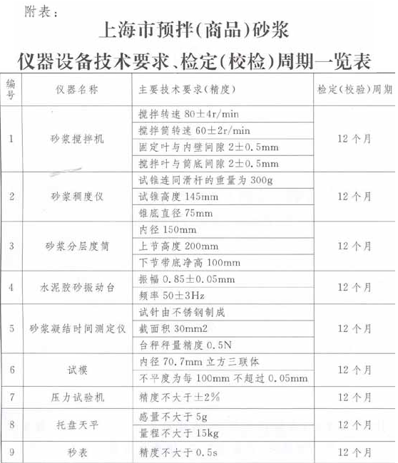 附件1:上海市預(yù)拌(商品)砂漿生產(chǎn)企業(yè)技術(shù)條件