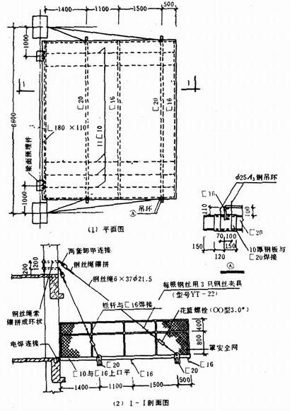三、 邊長(zhǎng)為50~150cm的洞口,必須設(shè)置以扣件扣接鋼管而成的網(wǎng)格,并在其上滿鋪竹笆或腳手板。也可采用貫穿于混凝土板內(nèi)的鋼筋構(gòu)成防護(hù)網(wǎng),鋼筋網(wǎng)格間距不得大于20cm.