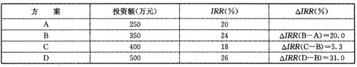 因為△IRR(C-B)=5.3%<18%,所以投資額較小的方案B優(yōu)于方案C;