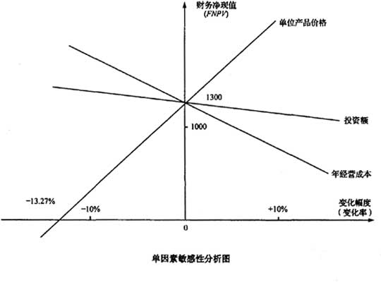 單因素敏感性分析圖如下: