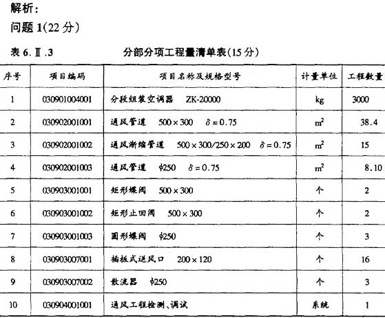 1.根據(jù)《建設(shè)工程工程量清單計(jì)價(jià)規(guī)范》的規(guī)定,編列出該工程的分部分項(xiàng)工程單項(xiàng)目,將相關(guān)內(nèi)容填入答題紙表6.Ⅱ.3 中,并在答題紙表6.Ⅱ.3的下面列式計(jì)算通風(fēng)管道的工程量。