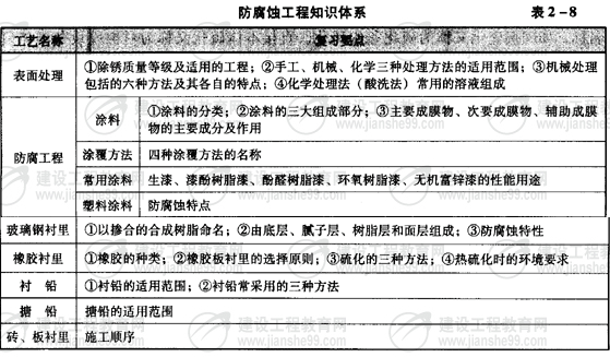 防腐蝕工程知識體系(表2-8)。
