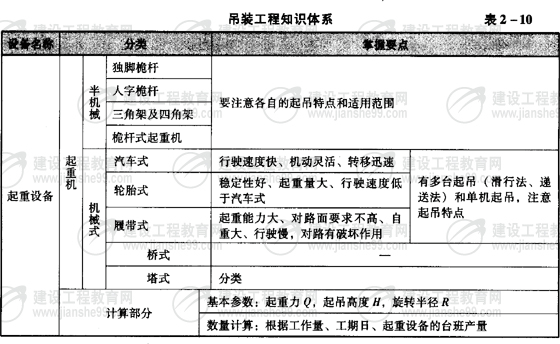 吊裝工程知識體系(表2-10)。