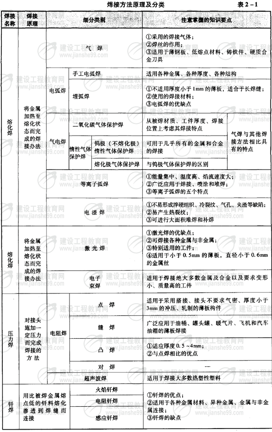 焊接方法原理及分類(表2-1)。